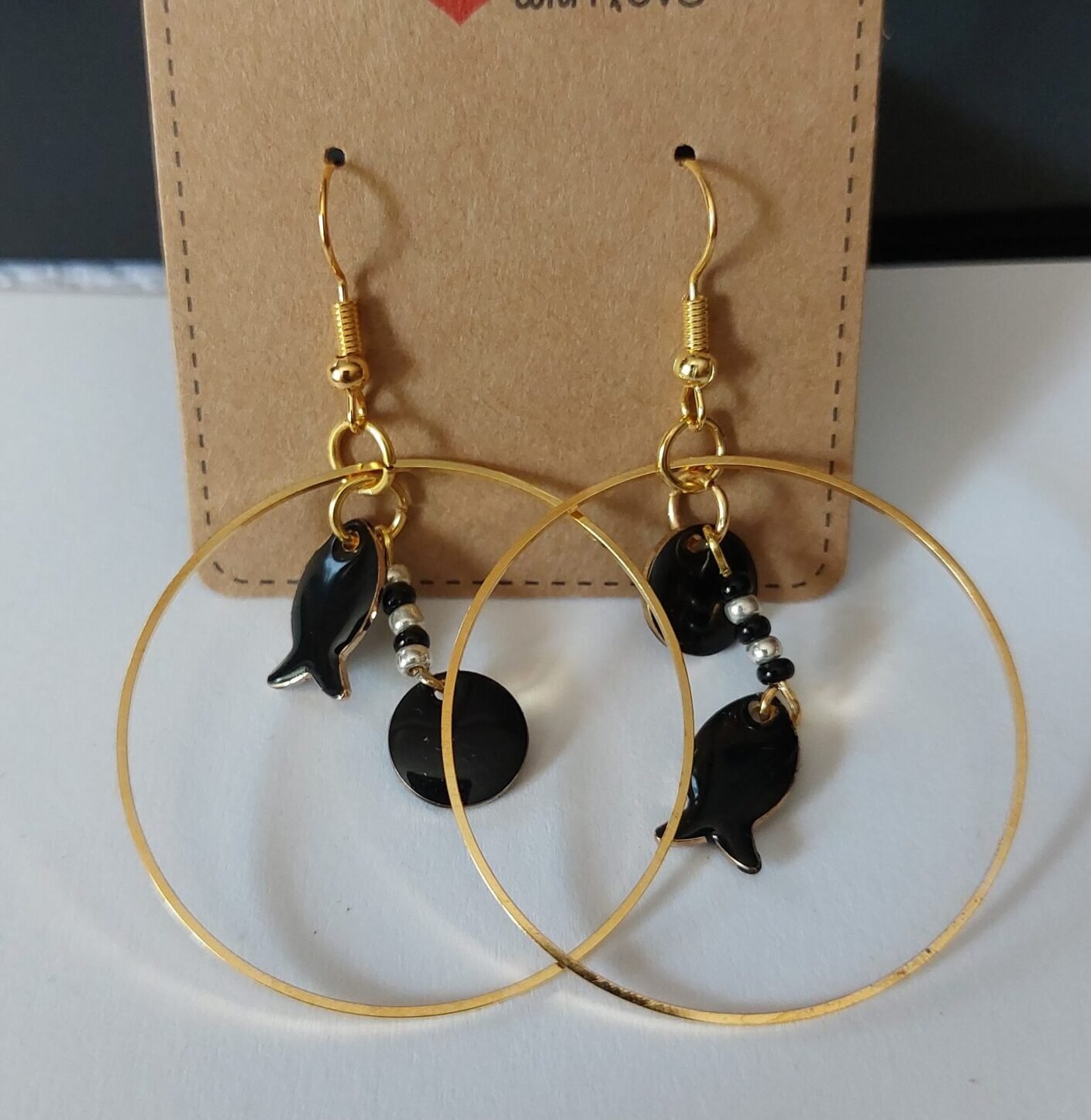 Boucles15,00 € Créoles poissons noirs En stock quantité de Boucles Ajouter au panier Catégorie : Boucles d'oreilles Description Description Crochets dorés en acier inoxydable breloques en alliage et email, perles de verre Poids env 4.90gr Taille 5cm x 3.5cm Produits similaires Boucles d'oreillesBoucles Monstera 15,00 € Ajouter au panier Boucles d'oreillesGrandes Boucles Monstera 15,00 € Ajouter au panier Boucles d'oreillesBoucles Llyn 19,00 € Ajouter au panier