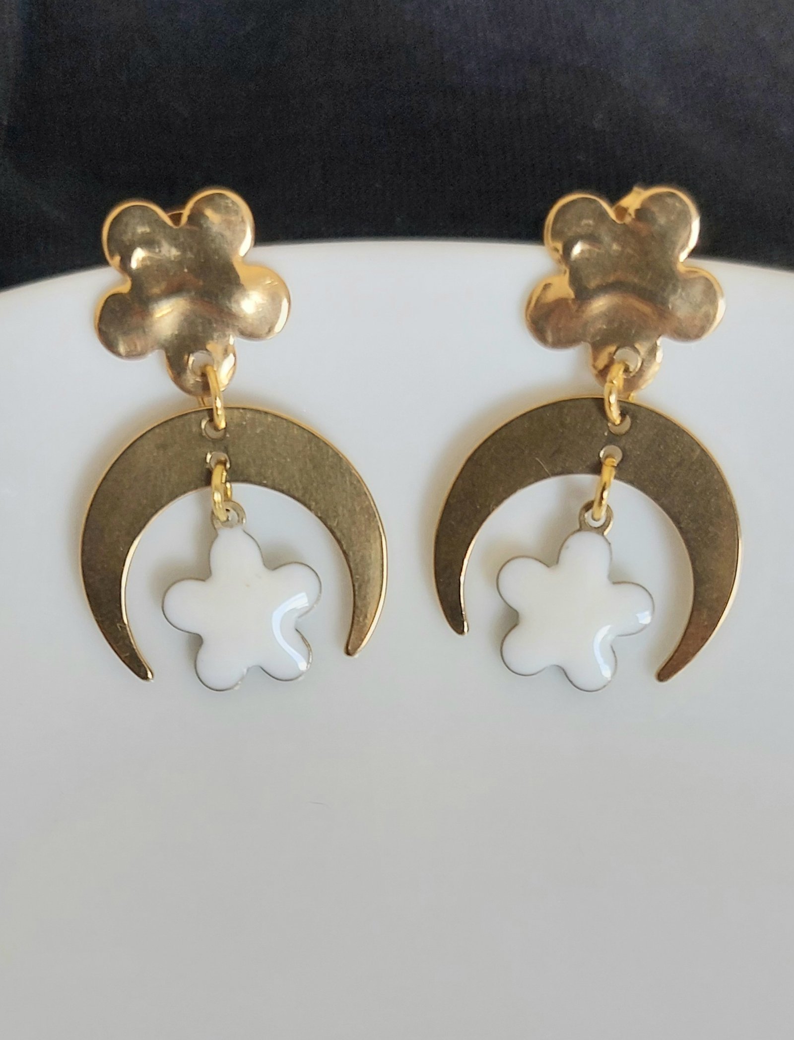 Boucles d’oreilles croissant de lune13,00 € Boucles Croissant de lune et fleur/étoile blanche En stock quantité de Boucles d'oreilles croissant de lune Ajouter au panier Catégorie : Boucles d'oreilles Description Description Clous acier inoxydable dorés breloques acier inoxydable, alliage et émail Longueur env 2.5cm Poids env 4.50gr Produits similaires Boucles d'oreillesGrande boucles Monstera 17,00 € Ajouter au panier Boucles d'oreillesBoucles Llyn 19,00 € Ajouter au panier Boucles d'oreillesGrandes Boucles Monstera 15,00 € Ajouter au panier